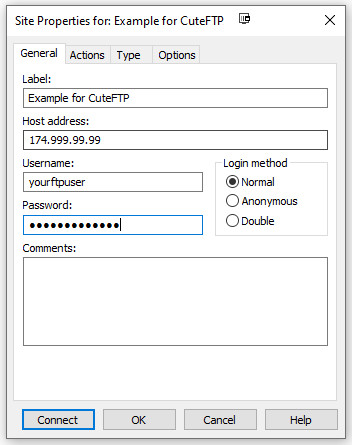 On the first screen, provide the FTP Host, User and Password (refer to your Hosting Details PDF).